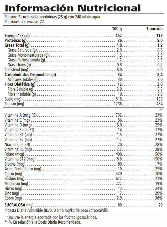 - Contiene 6 g de fibra por porción